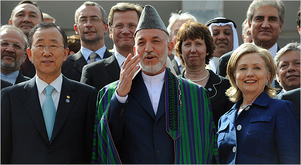 NYT: Secretary of State Hillary Rodham Clinton and Iranian Foreign Minister Manouchehr Mottaki are caught in the same photo frame in Kabul. Related story here.