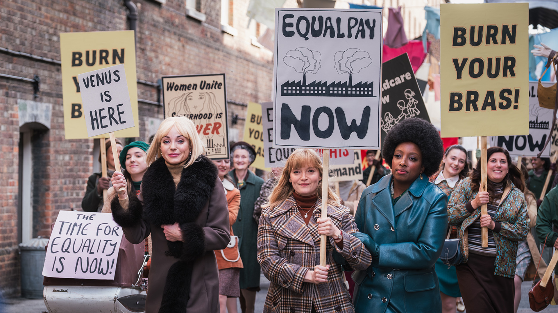 At a postnatal visit, Rosalind (Natalie Quarry) is surprised to see a political meeting in progress. She is fascinated as the women discuss a march through London. Later, Nurse Crane, Trixie, Rosalind and Joyce (Renee Bailey) attend a local meeting and all except Nurse Crane feel emboldened and inspired as they are encouraged to burn their bras. Sister Julienne (Jenny Agutter) is intrigued by the movement and quietly reads The Female Eunuch by Germaine Greer.