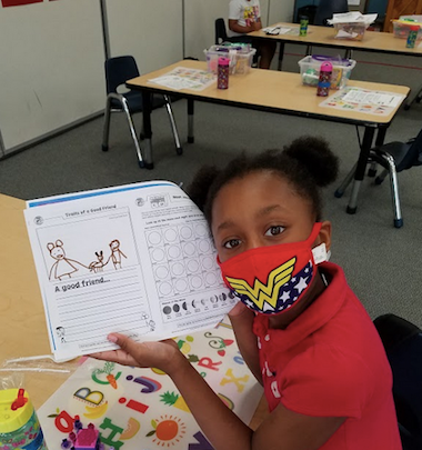 At our site we have rising Kindergarten, First Grade, and Second grade students. The PBS KIDS Summer Activity Booklet allowed us to focus on content at a broader range of ages. This resource was designed for students in PreK through 2nd Grade. We introduced our weekly theme of “Friends & Neighbors” content by sharing the videos in this Daniel Tiger: Life’s Little Lessons resource. Afterwards, students took turns describing moments when they were a good friend or had a good friend in their lives. To reflect on their knowledge, students completed the “Traits of a Good Friend” writing activity.