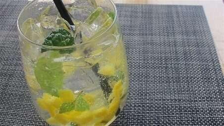 This sparkling drink, invented by my colleague Linda Wolpert, is wonderfully refreshing on a hot summer day. My family thinks it may truly be the best-tasting drink we have ever enjoyed. For an adult cocktail, add an ounce of rum to each glass.
