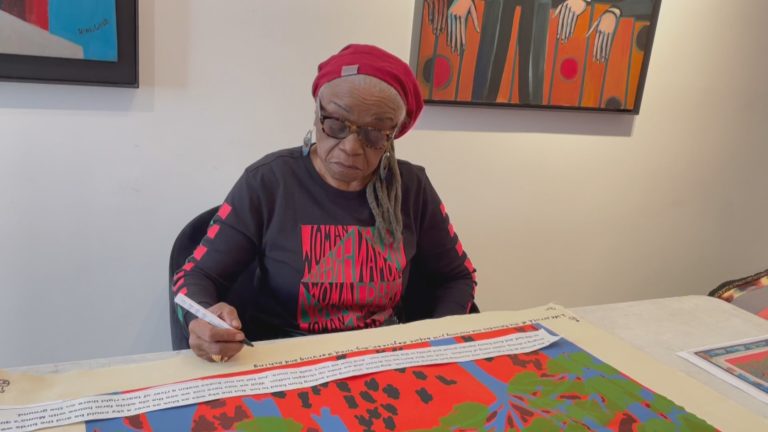 Apr 12 Watch 7:05 Artist Faith Ringgold’s life’s work celebrated in New York exhibit By Jeffrey Brown, Anne Azzi Davenport, Alison Thoet A major retrospective at the New Museum in New York looks at the remarkable life and work of artist Faith Ringgold, 91, who has fought for change in the art world and beyond for 60 years. Jeffrey Brown visited with… Continue watching