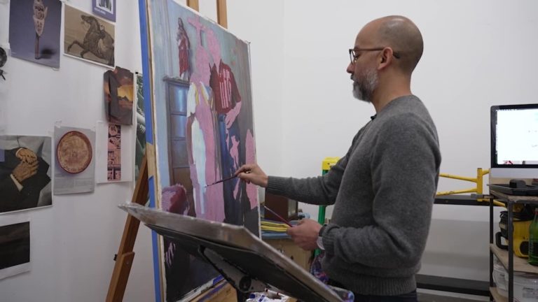 Jan 21 Watch 7:08 ‘Just a Dream’ offers glimpse of tragedy and triumph of life in contemporary America By Jeffrey Brown, Lena I. Jackson The exhibition, "Just a Dream,” presents 25 years of work from Vincent Valdez in a series of chapters that look at both personal and collective histories. Senior arts correspondent Jeffrey Brown met with Valdez for our arts and culture series,… Continue watching