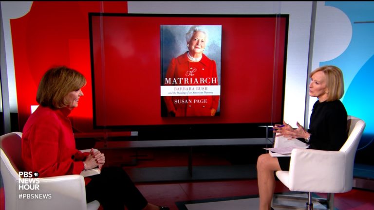Apr 12 Watch 7:18 New biography explores the ‘underestimated’ Barbara Bush It has been nearly a year since the death of Barbara Bush. Now, Susan Page’s new biography of the former first lady, “The Matriarch,” reveals the heartache and happiness that shaped Bush’s life. Judy Woodruff sits down with Page to… Continue watching
