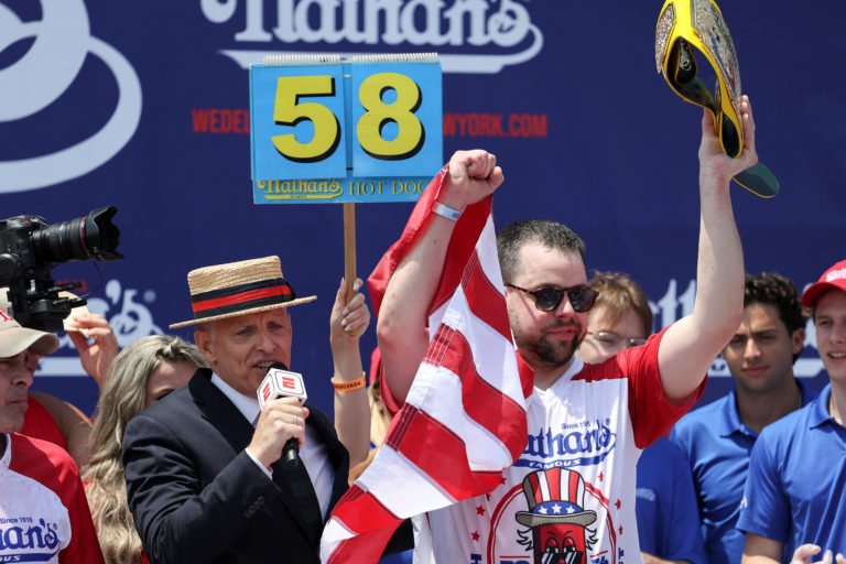Jul 04 With reigning champ absent, Patrick Bertoletti of Chicago wins first men’s title at annual Nathan’s hot dog eating contest By Susan Haigh, Cedar Attanasio, Associated Press Bertoletti won by consuming 58 hot dogs in a tight, 10-minute race where the leader bounced back and forth. Earlier, defending champion Miki Sudo of Florida won her 10th title in the women's division. Continue reading