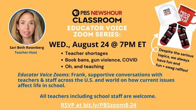 Fill out this form to share your thoughts on Classroom’s resources, including Educator Voice Zooms. Sign up for NewsHour Classroom’s ready-to-go Daily News Lessons delivered to your inbox each morning.