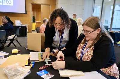 Teachers working together on a project at NSTI in July 2024 at the USPTO in Alexandria, Va. Credit: PBS News Hour Classroom