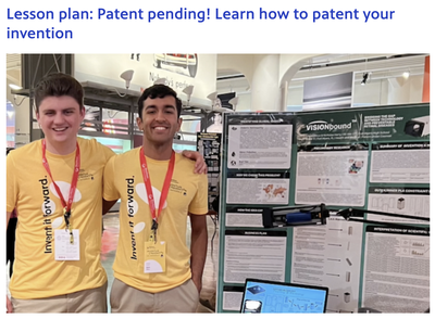Do you know many young people across America and the world have earned a U.S. patent for an invention they've created? Educators have played a key role in providing their students with information on how to earn a patent and learn about the importance of protecting their ideas, or intellectual property.