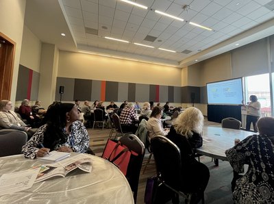 Dawn Bowlus presenting at ACTE in San Antonio, Texas, in Dec. 2024. Credit: PBS News Hour Classroom