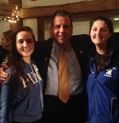 Kingswood Regional High School senior Allison Perkins and a friend pose with Republican candidate Chris Christie.