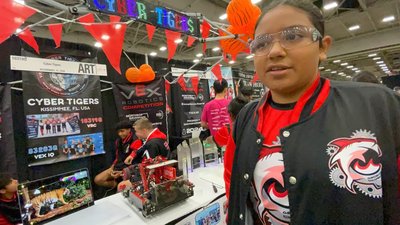 News Hour Classroom spoke with Flores-Wong and her son Julien, who competed as part of the robotics team "Cyber Tigers" at last year's VEX Robotics World Championship in Dallas, Texas.