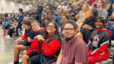 Domi Flores-Wong and husband with rest of the fans at VEX Robotics World Championship, Dallas, Texas, May 2024.
