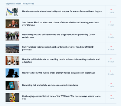 Skim the segments from the latest NewsHour, and choose the story that works best for your class. Click on the following image which will take you to the video. Then answer the questions below.