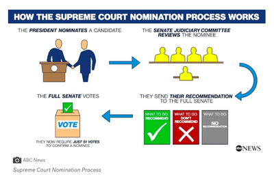 - What are the steps involved in the nomination process for a Supreme Court justice? (see the chart below)