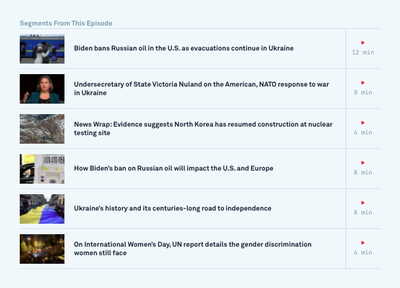 "What this means is that globally and on average, girls and women only have three-quarters of the same rights that men do. We think that's outrageous. We think it's unacceptable. And we wanted people to know." -- Michelle Milford Morse, United Nations Foundation’s vice president for girls and women strategyOn International Women’s Day, March 8, 2022, NewsHour took a close look at the state of women and girls worldwide. Michelle Millford Morse, the United Nations Foundation’s vice president for girls and women strategy, joined NewsHour's Nicole Ellis to discuss the agency’s new report on gender inequality across the globe. Watch the above to learn more. If you want to check out NewsHour's stories from Ukraine, click on image below: