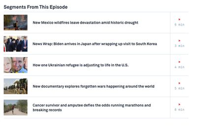 In New Mexico, thousands of firefighters are battling a colossal wildfire that has become the largest in state history. A historic drought coupled with climate change has led to longer and more destructive wildfires across the West. Michael Mann, a professor of atmospheric science at Penn State University and author of “The New Climate War” joins Geoff Bennett to discuss. Directions : To watch the feature story, click the video above. Or skim the segments from the latest NewsHour by clicking on the image below, and choose the story that works best for your class. Then answer the questions below. For a transcript of the feature story, click here .