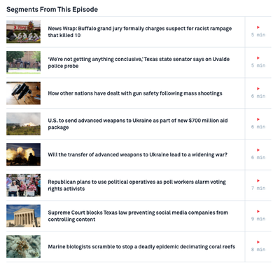 Canada unveiled legislation this week that would freeze new handgun purchases and create a mandatory buyback program for semi-automatic rifles. The announcement coincided with the funerals for 19 victims of the massacre in Uvalde, Texas, but it was years in the making. Nick Schifrin reports on how other nations responded to their own mass shootings. For a transcript of this story, click here . Directions : To watch the feature story, click the video above. Or skim the segments from the latest NewsHour by clicking on the image below, and choose the story that works best for your class. Then answer the questions below. For a transcript of the feature story, click here .