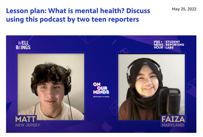Click the image below for this lesson based on PBS NewsHour Student Reporting Labs On Our Minds podcast.