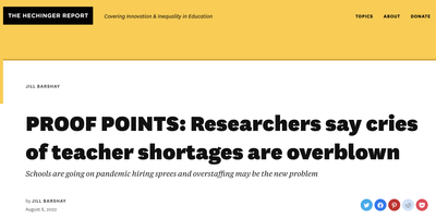 What do you think are some of the most significant impacts on education that come from the issues discussed in this story? What do you think is the best way to recruit and retain talented educators in public schools? Media literacy : Are there teachers who you think might have a different perspective on the challenges that are leading to teacher shortages?For More