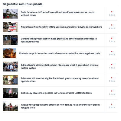 Anti-government protests swept across Iran after a 22-year-old woman died in the custody of the regime's morality police. She was arrested for not wearing an appropriate hijab, or head covering. Actor and human rights advocate Nazanin Boniadi joins Amna Nawaz to discuss. You may also choose another story from the newscast by clicking the link below and answering the following questions: