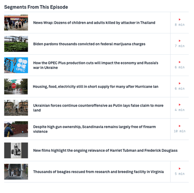 President Biden pardoned thousands of Americans convicted on federal charges of simple possession of marijuana and encouraged governors to do the same. The president also directed his administration to review how marijuana is classified as a drug under federal law. For a transcript of this story, click here . You may also choose another story from the newscast by clicking the link below and answering the following questions: