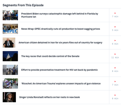 President Biden arrived in Florida Wednesday to survey the damage left behind in the wake of Hurricane Ian. The visit comes as search and rescue crews continue their work in the hardest hit parts of the state. For a transcript of this story, click here. You may also choose another story from the newscast by clicking the link below and answering the following questions: