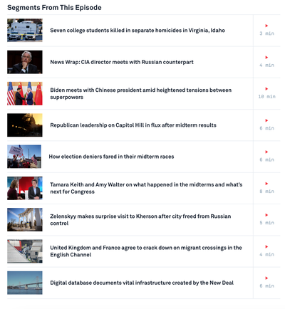 President Biden and Chinese President Xi held their first in-person meeting as the U.S. and China increasingly confront each other over technology, Taiwan and human rights. The two sides did not agree to step back from their respective positions but did commit to managing tensions. Bonnie Glaser and Yun Sun joined Nick Schifrin to discuss the significance of the meeting. For a transcript of this story, click here . You may also choose another story from the newscast by clicking on the image below. Then answer the following questions.