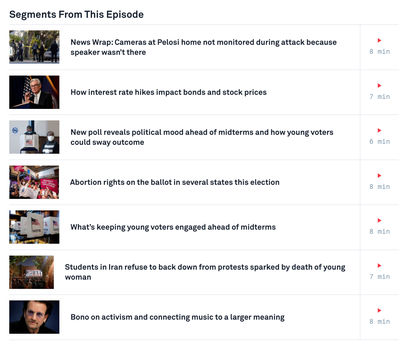 With less than a week to go until Election Day, our latest PBS NewsHour/NPR/Marist poll is giving us a look at the landscape and key issues playing out in the midterm elections. It reveals the political mood and how turnout among young voters could sway the outcome. For a transcript of this story, click here . You may also choose another story from the newscast by clicking the link below and answering the following questions: