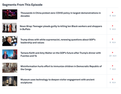 The largest protests in more than 30 years rocked China as tens of thousands of demonstrators across the country filled the streets to denounce Beijing’s zero-COVID quarantine and testing policies. But some of the demonstrations quickly evolved into demands for political change, including the removal of President Xi. For a transcript of this story, click here . You may also choose another story from the newscast by clicking on the image below. Then answer the following questions.