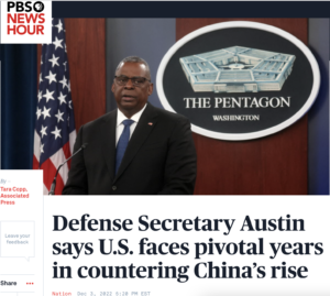 Watch the video and answer the questions below. The U.S. government labels China as one of its greatest challenges, even more so now as Beijing flexes its military prowess with an unprecedented build-up. Admiral John Aquilino is the Commander of the United States Indo-Pacific Command. Nick Schifrin traveled to Hawaii and sat down with the commander to discuss rising tensions with China and an uncertain future in the region. Follow along with the transcript here .Five Facts