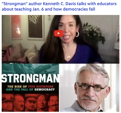 Screenshot of NewsHour Classrom's Educator Voice show with Kenneth C. Davis on his book "Strongman: The Rise of Five Dictators and the Fall of Democracy" (Henry Holt & Co. 2020). Courtesy: PBS NewsHour Classroom