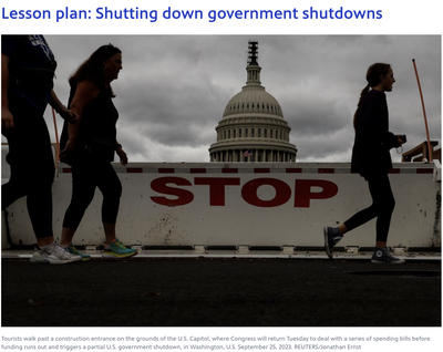 3. Check out this lesson plan, Shutting down government shutdowns, by Ryan Werenka, high school government teacher in Troy, Michigan, and NewsHour Classroom advisor. This lesson, part of Judy Woodruff's America at a Crossroads' series, will allow students to understand the conditions that have led to government shutdowns, explore the language of the United States Constitution on topics relevant to the potential shutdown and solutions and allow for students to propose solutions for avoiding future government shutdowns.