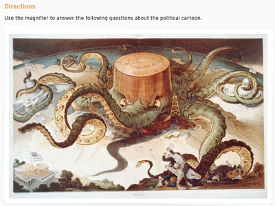 Discuss the role corruption has played in US history using this Journalism in Action political cartoon of John D. Rockefeller's Standard Oil company and stranglehold he had on key political institutions?