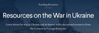 Check out the Council on Foreign Relations Education website to learn about the war in Ukraine and its history here. Get Background on the War in Ukraine, History and Concepts, Europe and NATO, Nuclear Issues and more.
