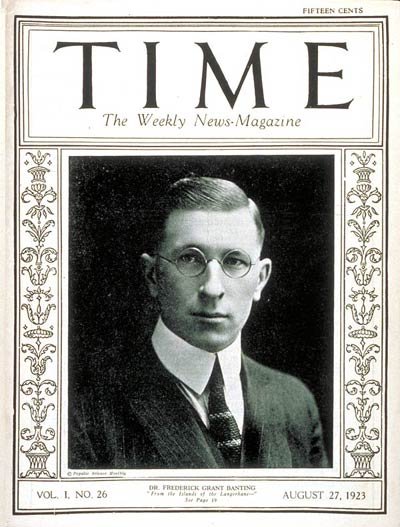 Sir Frederick Banting on the cover of Time magazine in 1923. Credit: https://commons.wikimedia.org/wiki/File:TIMEMagazine27Aug1923.jpg