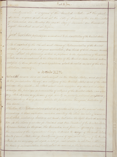 Fourteenth Amendment of the U.S. Constitution. Credit: https://www.senate.gov/artandhistory/history/common/image/14thAmendment.htm