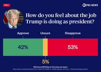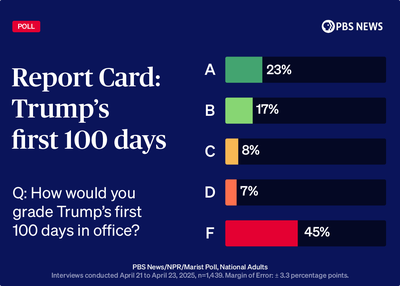 New York Times columnist David Brooks and Washington Post associate editor Jonathan Capehart join Amna Nawaz to discuss the week in politics, including what voters think about President Trump's performance in his first 100 days in office, the issues Democrats are leaning into to counter the administration and Trump's order threatening federal funds for public media.