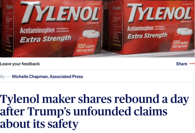 Reflect on the ramifications of the autism story you just watched. Read the article, Tylenol maker shares rebound a day after Trump’s unfounded claims about its safety, which states, "Shares of Tylenol maker Kenvue bounced back sharply before the opening bell Tuesday, a day after President Donald Trump promoted unproven and in some cases discredited ties between Tylenol, vaccines and autism."
