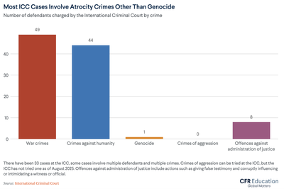 Take a look at the learning resource "What is genocide?" by CFR Education. The reading provides a historical overview of how the word "genocide" was introduced as a legal term after the Holocaust — and how the world continues to debate its meaning. Read the history, examine the photographs and analyze the graph below. Be sure to read the section at the end, "Is genocide happening today?"