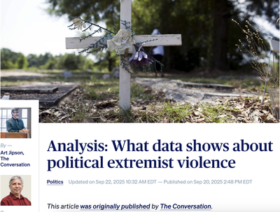 Read the following article from The Conversation, Analysis: What data shows about political extremist violence.