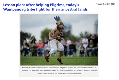 Learn more about the Wampanoag people in this article by elder Nancy Eldredge, Nauset Wampanoag and Penobscot. This lesson about the Wampanoag's continuous fight to protect their land may be particularly useful at the start of the school year and Thanksgiving time:
