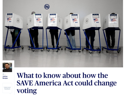 Read What to know about how the SAVE America Act could change voting by News Hour's Joshua Barajas. The article is broken down into the following categories: