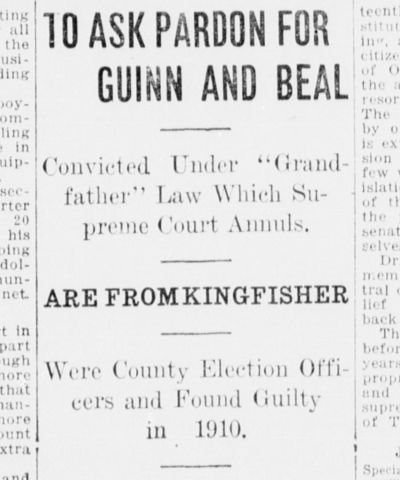 - Why did some Oklahomans push for pardoning Guinn and Beale (note: Guinn vs. United States is the name of the 1915 Supreme Court case)?