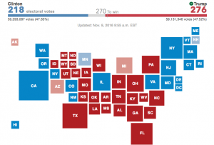 By midday Wednesday, the numbers showed Trump with a total of 279 of the 270 electoral votes needed to win, although it appeared Clinton would win the popular vote. Clinton had reportedly called Trump to concede early Wednesday morning. Later on Wednesday she appeared to publicly thank her supporters and talk about the future. "We have seen that our nation is more deeply divided than we thought," Clinton said. "But I still believe in America and I always will. And if you do, then we must accept this result and then look to the future. Donald Trump is going to be our president. We owe him an open mind and a chance to lead." Clinton also addressed her supporters who were hoping that she would be elected the first woman president of the United States. "I know we have still not shattered that highest and hardest glass ceiling, but someday, someone will and hopefully sooner than we think right now," she said. "And to all the little girls who are watching this, never doubt that you are valuable and powerful and deserving of every chance and opportunity in the world to pursue and achieve your own dreams." Republicans also pulled off key victories in races for both the U.S. Senate and House of Representatives, giving the GOP a majority in both legislative bodies.Key terms