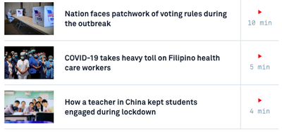 Choose your own current event from the list below for today's Daily News Story (click on the story and watch the video from there) and answer the discussion questions.