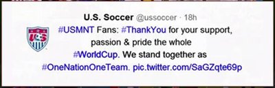 The U.S. Soccer Federation, which recently reached over a million Twitter followers, praised its fans after the game, saying, “Thank you for your support, passion and pride the whole World Cup.”