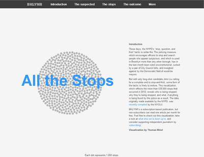 Tell students that they are going to follow the story of Stop and Frisk through the eyes of Brooklyn Community Arts & Media High School (BCAM) students and as well as through an interactive infographic called “All the Stops”. Students will watch a video clip and then explore one section of the infographic at a time, watch the next video and so on. You may allow students to complete on their own if there are an adequate number of computers for either individuals or groups. If you do not have computers for the class simply look at the infographic and video clips together on the board. Here is the order: