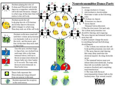 - Follow the directions and diagram below or download it in the materials section to the right and have your own Neurotransmitter Dance Party