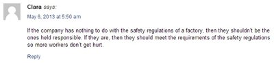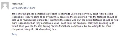 is hosting an interactive chat about fast fashion and the garment industry. Should fashion companies like H&M and Zara be responsible for the manufacturing of their clothing even though they don't own the factories? What should be their role? What is the role of the consumer? What is the role of government?