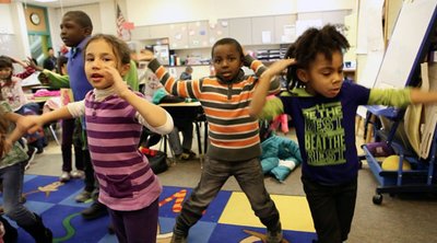 At Fox Hill Elementary School in suburban Indianapolis, students take “brain breaks,” short activities designed to get students up and moving, along with organized games and physical activity at recess and in the class are part of the school’s strategy to educate students holistically.