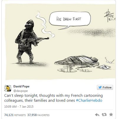 all over the world have shown their solidarity by producing their own cartoons that mourn the loss of life and stand defiant against attacks on free expression.
